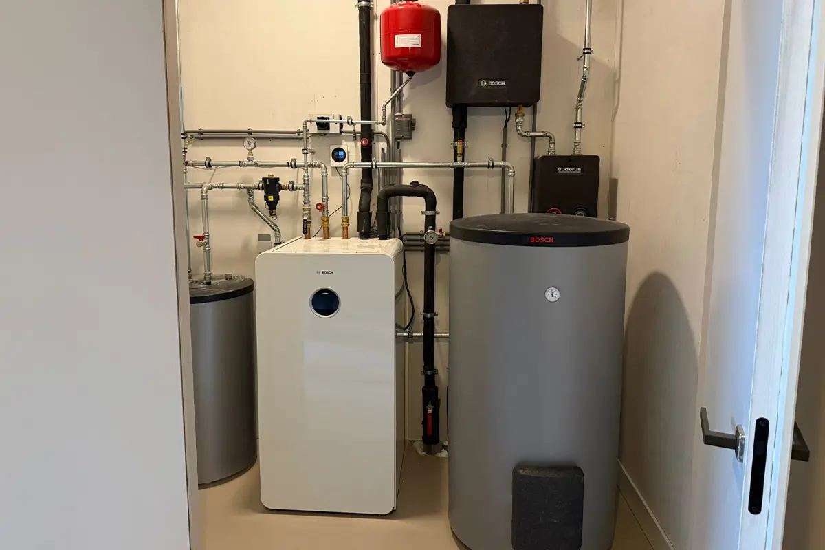 • Het leveren en installeren van een Bosch Compress 7800i warmtepomp met bron