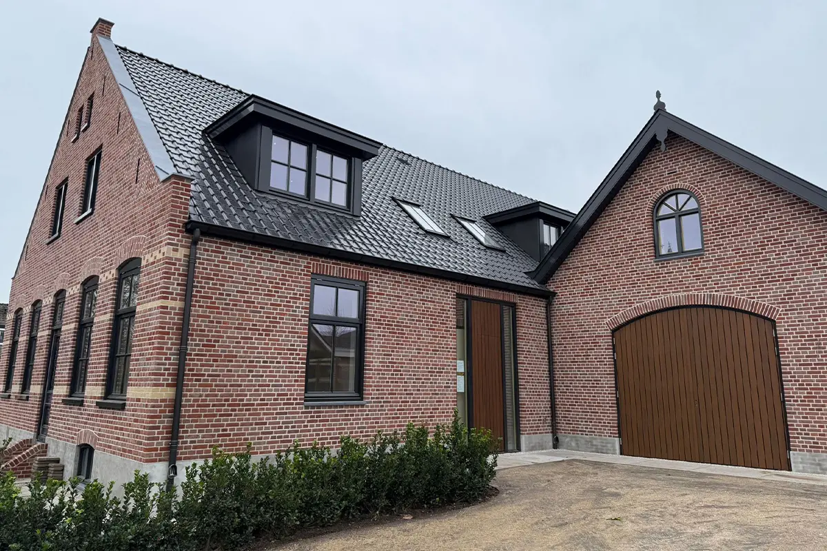 Waar voorheen een oude vervallen boerderij stond is deze prachtige nieuwbouwwoning gerealiseerd in Bunschoten. Het zinkwerk is bij deze woning uitgevoerd in de kleur zwart.